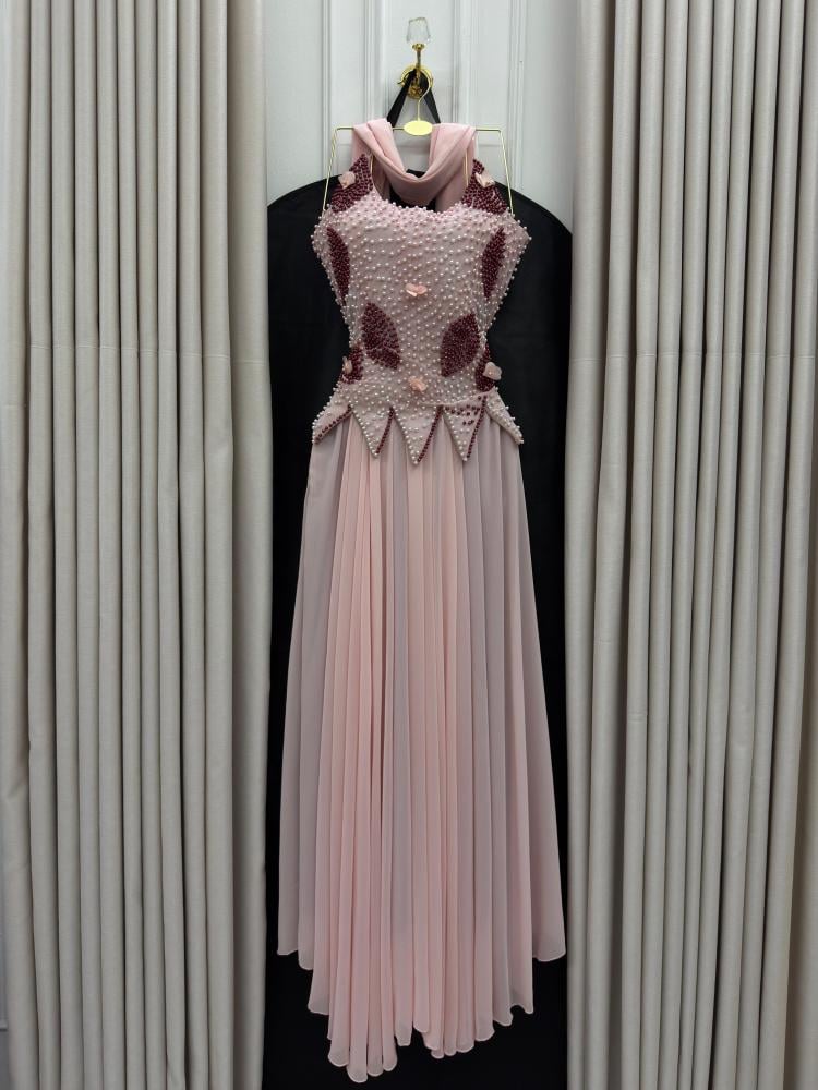 جورجيت دبل كلوش مع شال + تطريز لولو